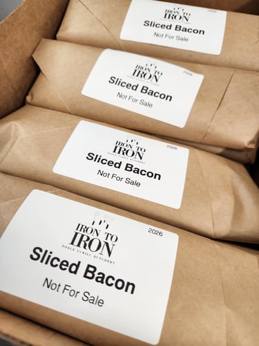 We slaughter and process the animal at our facility, where we double wrap cuts in plastic and butcher paper to preserve freshness, and our ground meat (fresh, breakfast sausage or Italian sausage) is bagged. Our spice blends for our sausage are homemade using simple and high quality ingredients- We never use store-bought premixed spice blends for any of our products.
