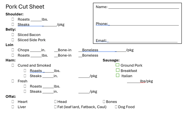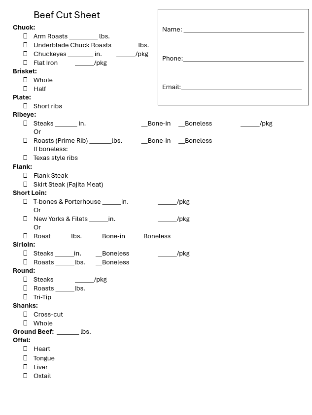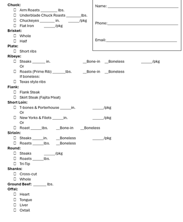 These forms are just for you to reference. We will always take orders in-person or over the phone.